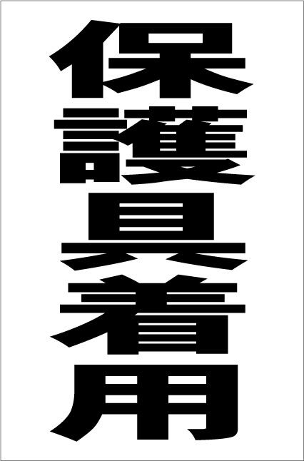 シンプル縦型看板 【工場・現場】 「保護具着用(黒)」屋外可